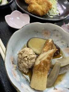 昨日は、さつまいもや牛蒡、こんにゃくや竹輪と