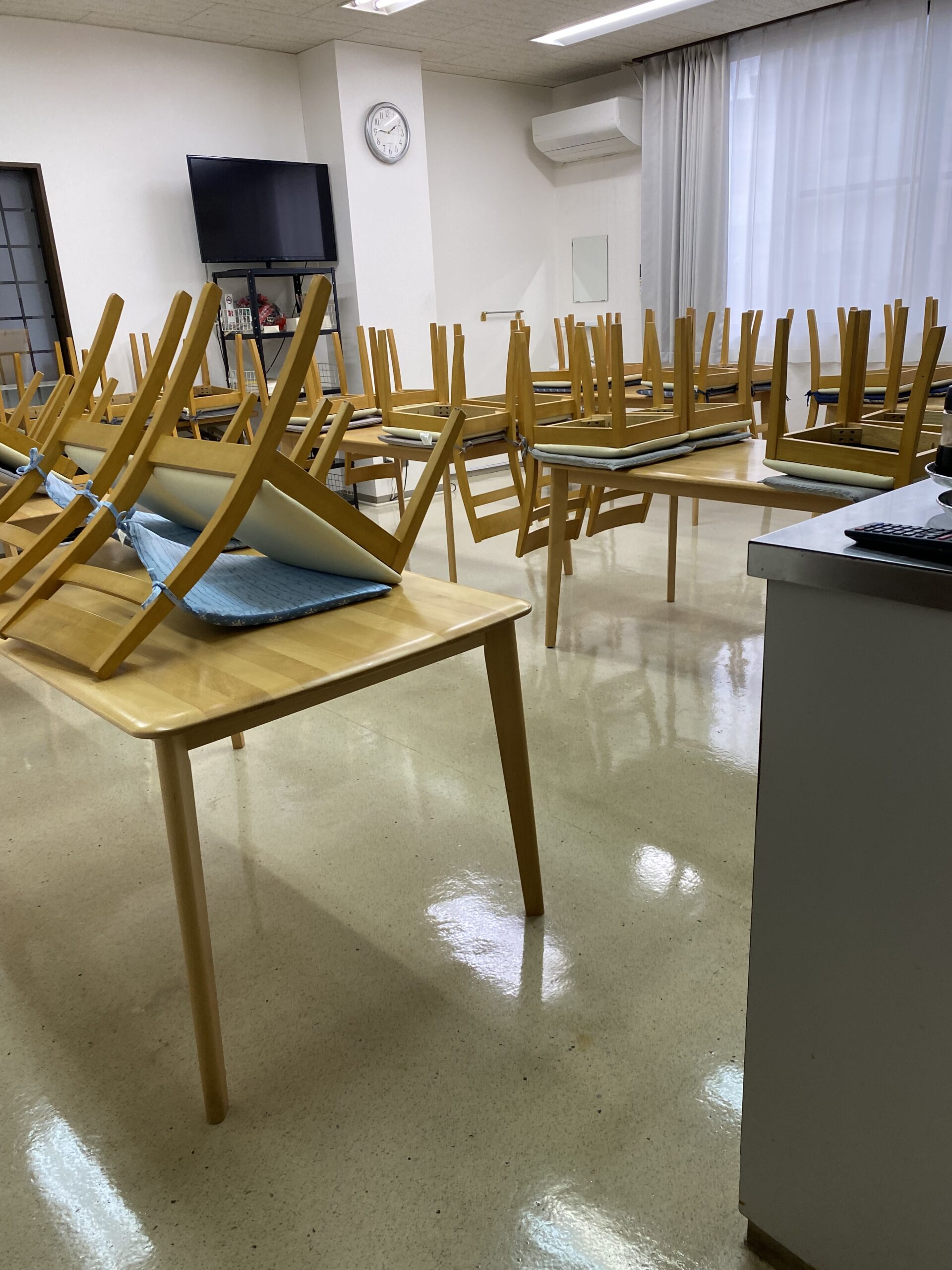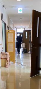 昨日は一階の廊下と食堂、