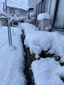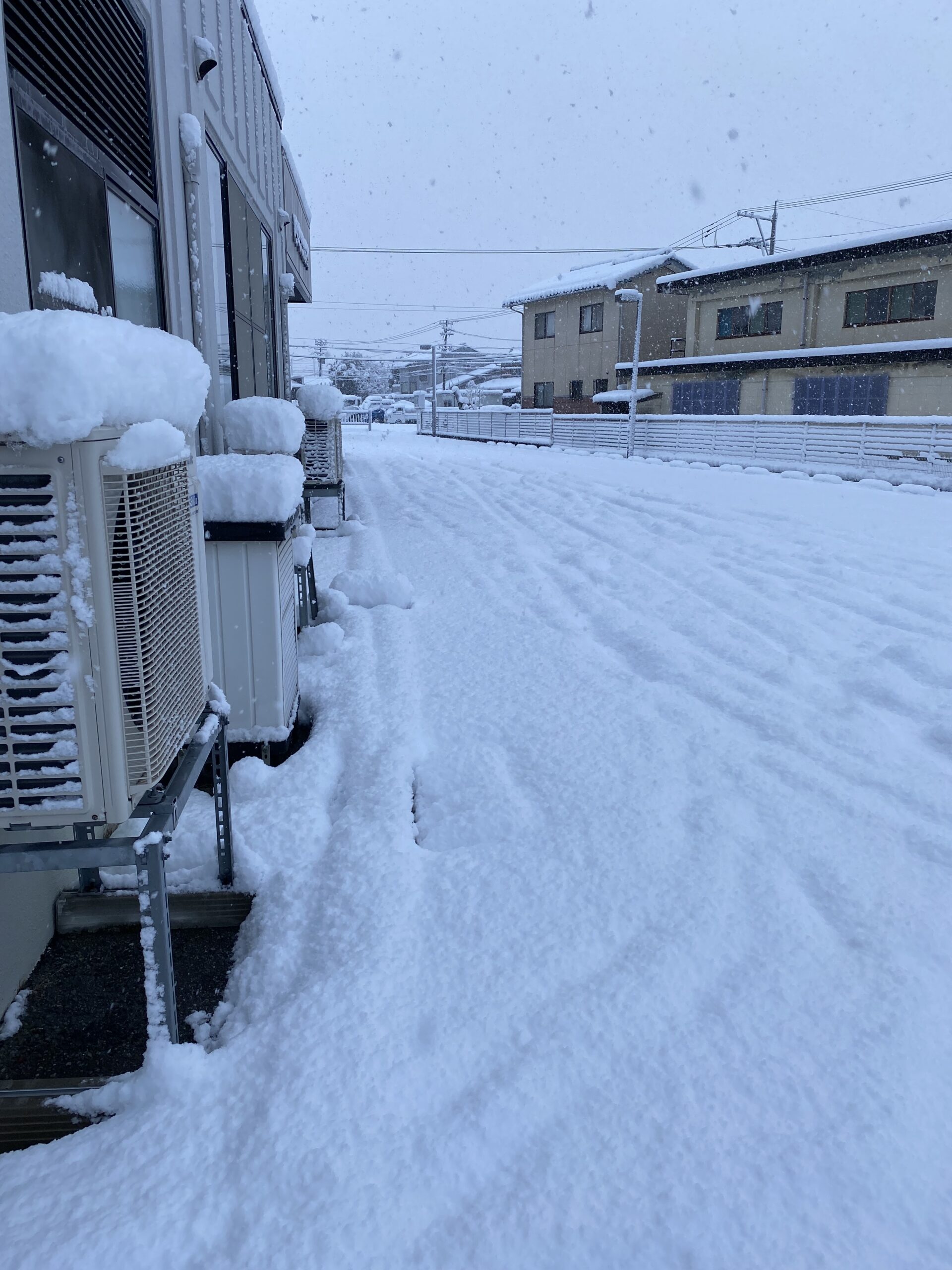 富山市内、ビジネス旅館日章付近は、15cm~20cmほど雪が、、、積もっています・・・